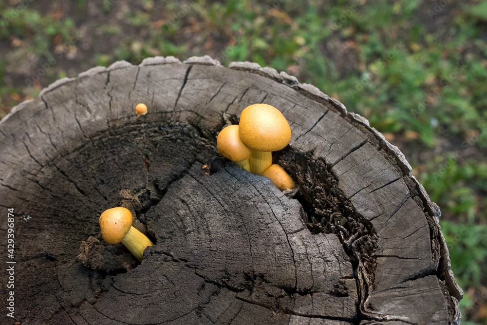 Inedible Orange Mushrooms Grow On A Dry Tree Stump Stock Photo Adobe Stock